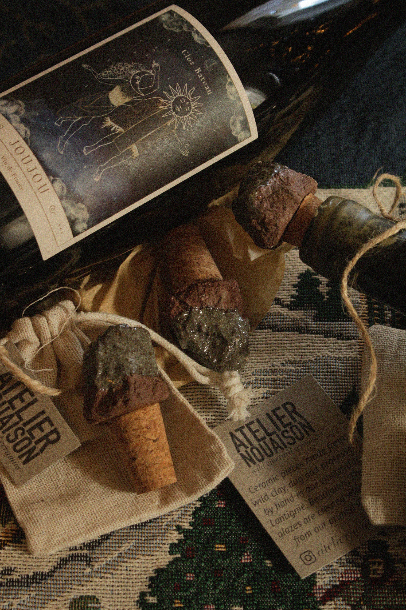 Handmade ceramic wine stopper by Atelier Nouaison & Clos Bateau